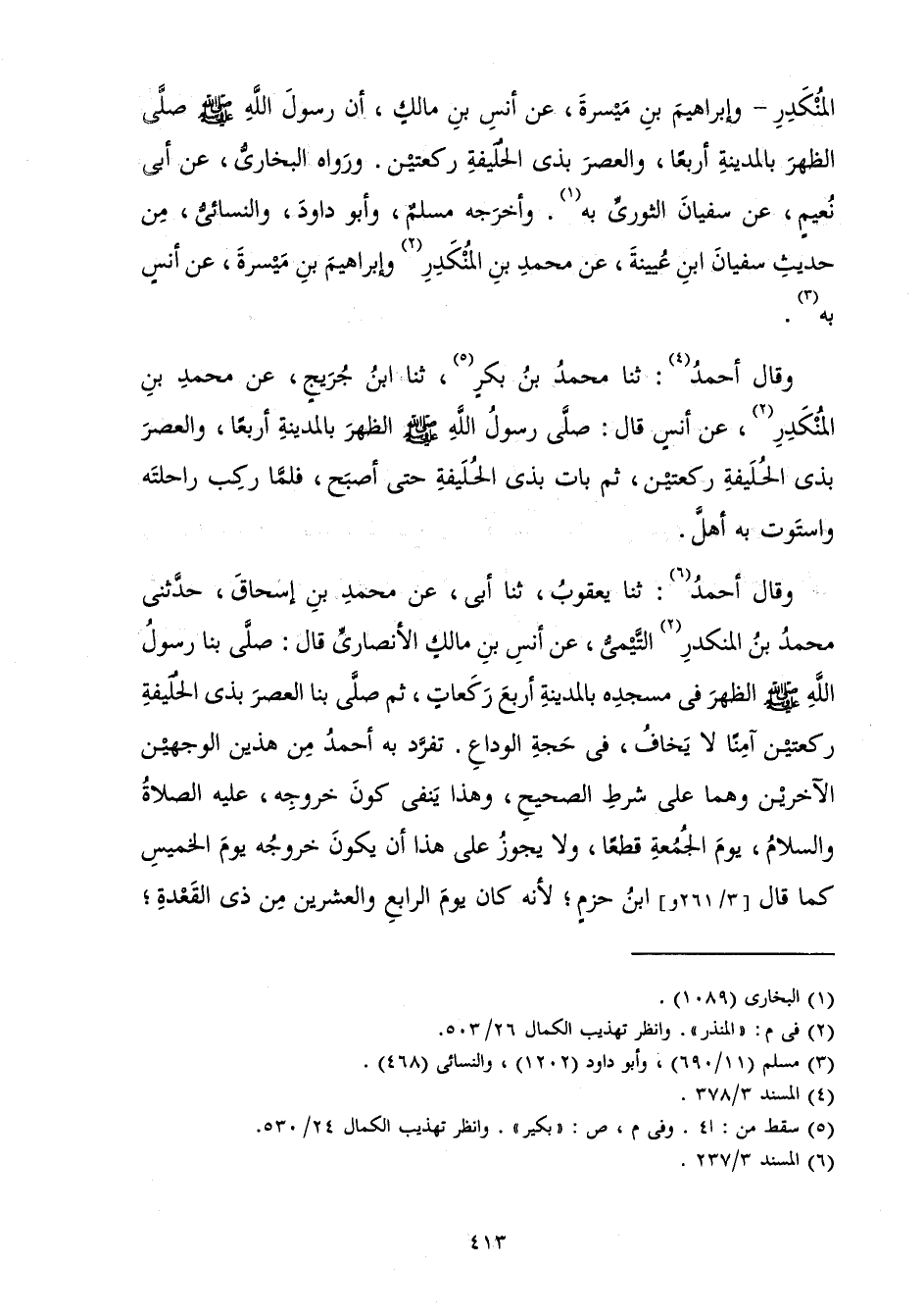 الْمُنْكَدِرِ - وَإِبْرَاهِيمُ بْنُ مَيْسَرَةَ، عَنْ أَنَسِ بْنِ مَالِكٍ «أَنَّ رَسُولَ اللَّهِ صَلَّى اللَّهُ عَلَيْهِ وَسَلَّمَ صَلَّى الظُّهْرَ بِالْمَدِينَةِ أَرْبَعًا، وَالْعَصْرَ بِذِي الْحُلَيْفَةِ رَكْعَتَيْنِ» . وَرَوَاهُ الْبُخَارِيُّ، عَنْ أَبِي نُعَيْمٍ، عَنْ سُفْيَانَ الثَّوْرِيِّ بِهِ. وَأَخْرَجَهُ مُسْلِمٌ، وَأَبُو دَاوُدَ، وَالنَّسَائِيُّ، مِنْ حَدِيثِ سُفْيَانَ بْنِ عُيَيْنَةَ عَنْ مُحَمَّدِ بْنِ الْمُنْكَدِرِ، وَإِبْرَاهِيمَ بْنِ مَيْسَرَةَ، عَنْ أَنَسٍ بِهِ.
