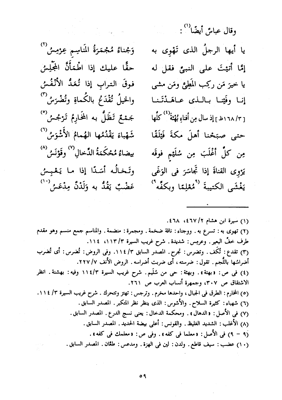 يَا أَيُّهَا الرَّجُلُ الَّذِي تَهْوِي بِهِ ... وَجْنَاءُ مُجْمَرَةُ الْمَنَاسِمِ عِرْمِسُ