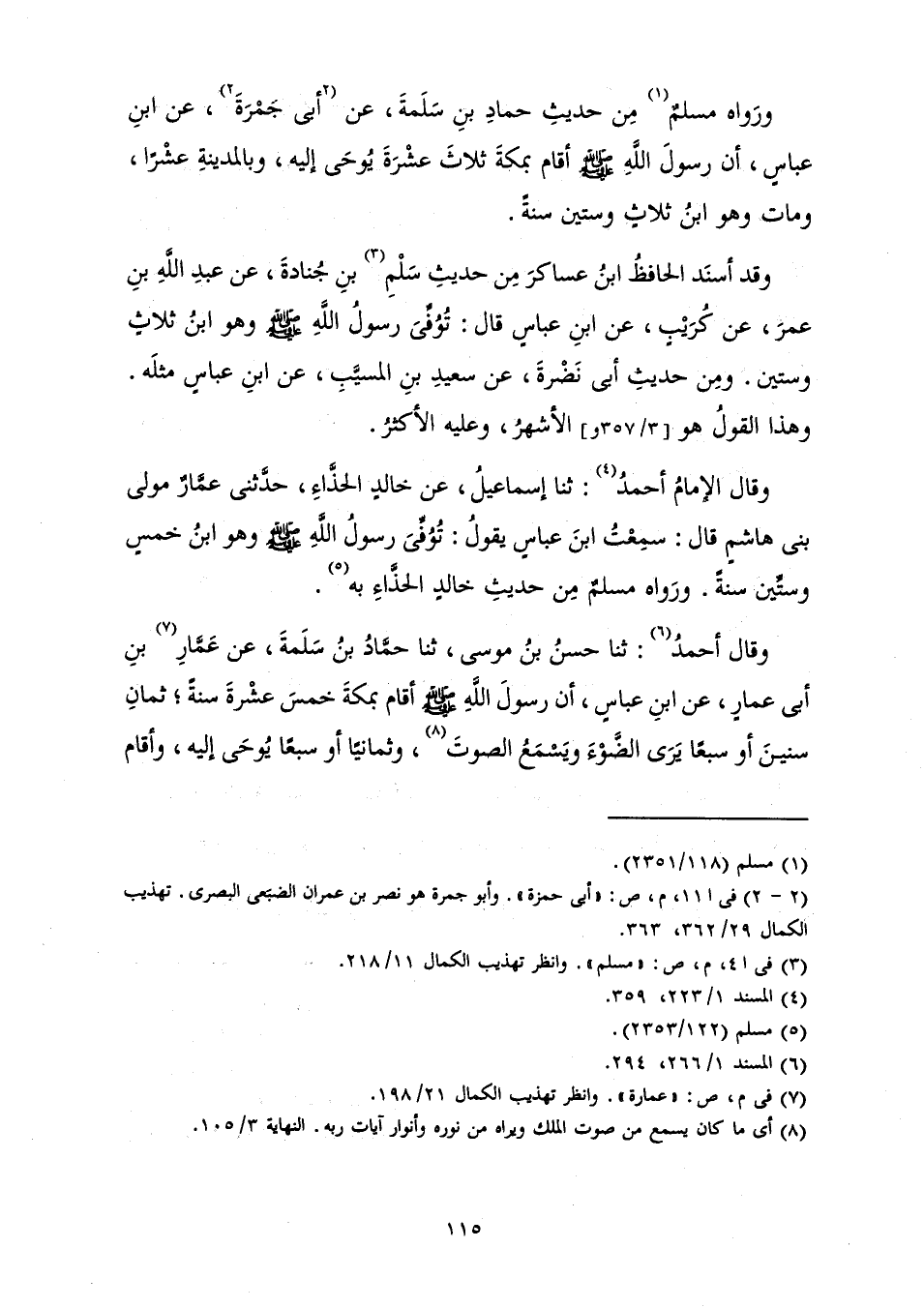 وَرَوَاهُ مُسْلِمٌ مِنْ حَدِيثِ حَمَّادِ بْنِ سَلَمَةَ، عَنْ أَبِي جَمْرَةَ، عَنِ ابْنِ عَبَّاسٍ، «أَنَّ رَسُولَ اللَّهِ صَلَّى اللَّهُ عَلَيْهِ وَسَلَّمَ أَقَامَ بِمَكَّةَ ثَلَاثَ عَشْرَةَ يُوحَى إِلَيْهِ، وَبِالْمَدِينَةِ عَشْرًا، وَمَاتَ وَهُوَ ابْنُ ثَلَاثٍ وَسِتِّينَ سَنَةً» .
