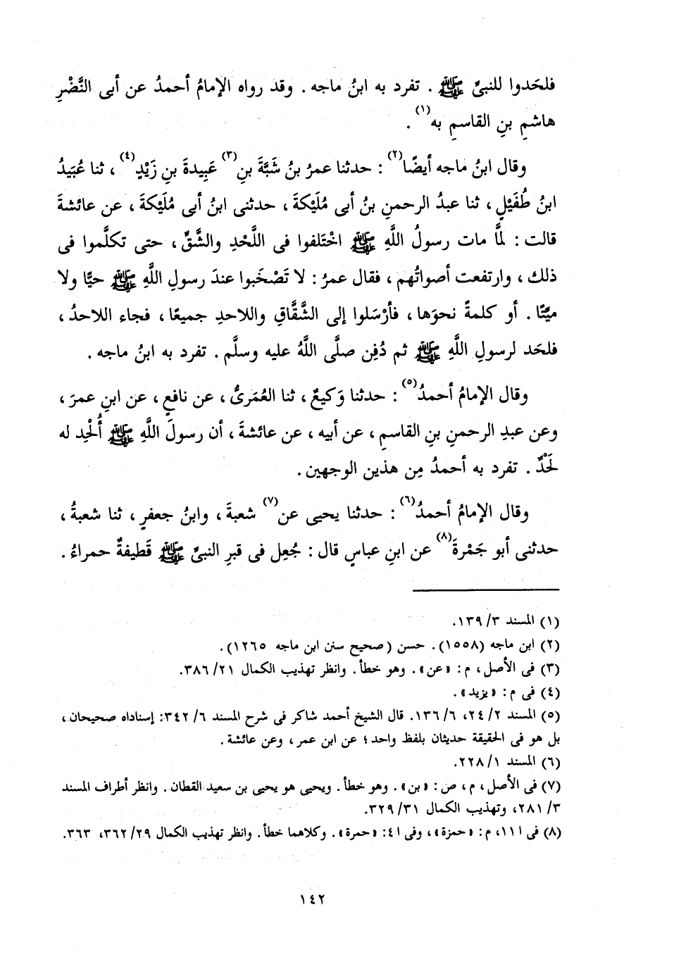 فَلَحَدُوا لِلنَّبِيِّ صَلَّى اللَّهُ عَلَيْهِ وَسَلَّمَ» . تَفَرَّدَ بِهِ ابْنُ مَاجَهْ. وَقَدْ رَوَاهُ الْإِمَامُ أَحْمَدُ عَنْ أَبِي النَّضْرِ هَاشِمِ بْنِ الْقَاسِمِ بِهِ.
