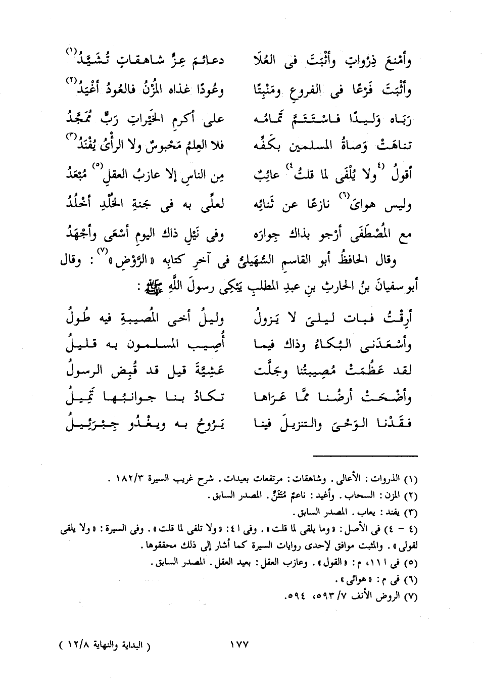 وَقَالَ الْحَافِظُ أَبُو الْقَاسِمِ السُّهَيْلِيُّ فِي آخِرِ كِتَابِهِ " الرَّوْضِ ": وَقَالَ أَبُو سُفْيَانَ بْنُ الْحَارِثِ بْنِ عَبْدِ الْمُطَّلِبِ يَبْكِي رَسُولَ اللَّهِ صَلَّى اللَّهُ عَلَيْهِ وَسَلَّمَ: