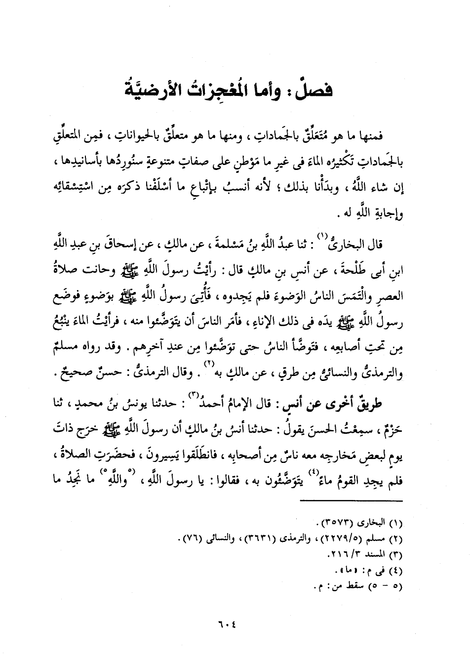 [فَصْلٌ فِي الْمُعْجِزَاتِ الْأَرْضِيَّةِ]