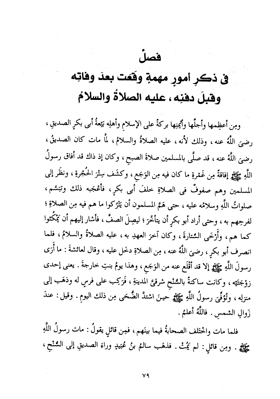 [فَصْلٌ فِي ذِكْرِ أُمُورٍ مُهِمَّةٍ وَقَعَتْ بَعْدَ وَفَاتِهِ وَقَبْلَ دَفْنِهِ عَلَيْهِ الصَّلَاةُ وَالسَّلَامُ]