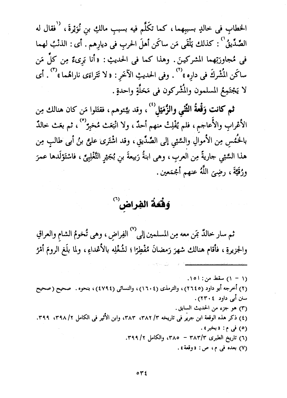 ثُمَّ سَارَ خَالِدٌ بِمَنْ مَعَهُ مِنَ الْمُسْلِمِينَ إِلَى وَقْعَةِ الْفِرَاضِ وَهِيَ تُخُومُ الشَّامِ وَالْعِرَاقِ وَالْجَزِيرَةِ، فَأَقَامَ هُنَالِكَ شَهْرَ رَمَضَانَ مُفْطِرًا ; لِشُغْلِهِ بِالْأَعْدَاءِ، وَلَمَّا بَلَغَ الرُّومَ أَمْرُ