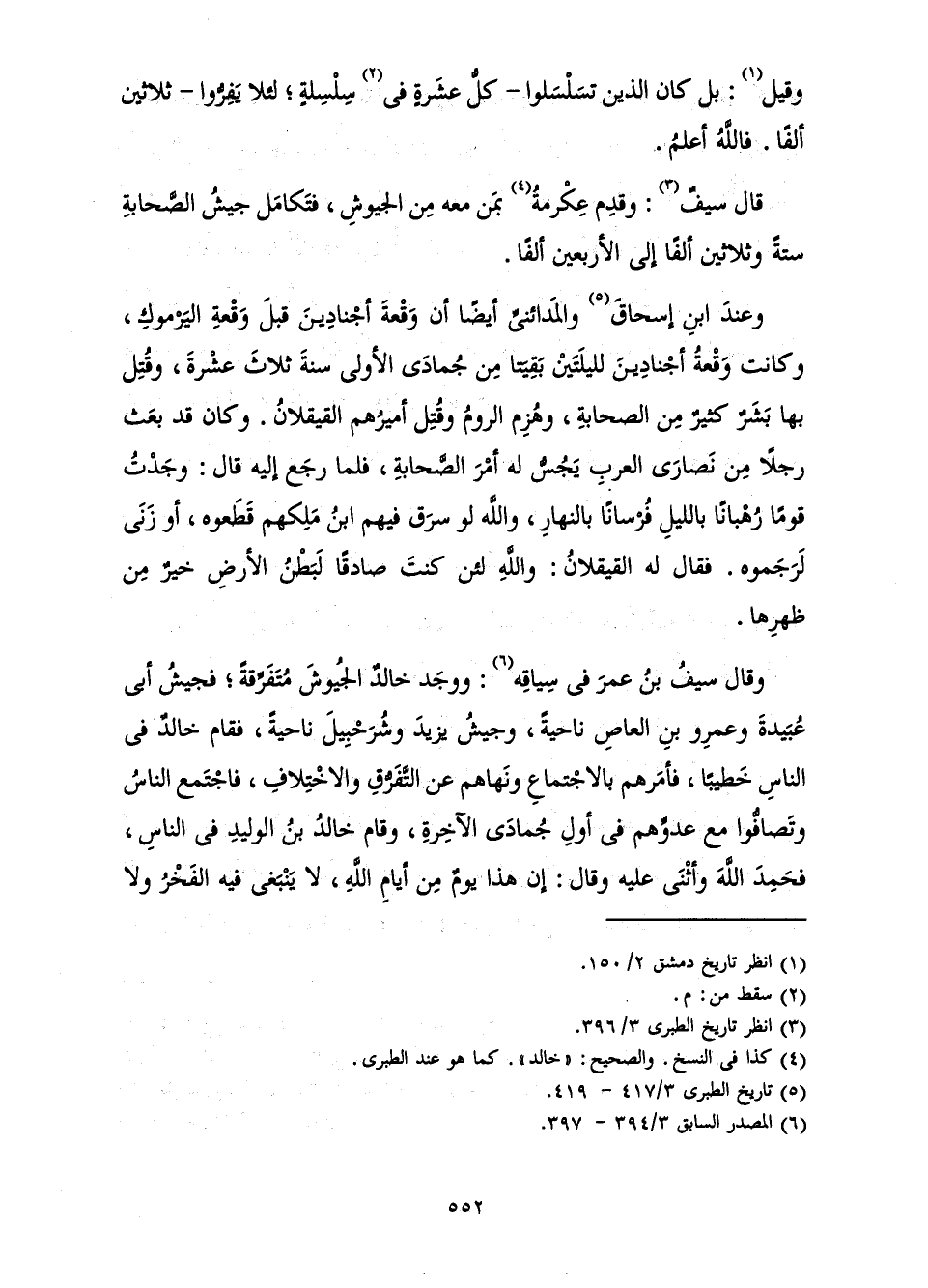 قَالَ سَيْفٌ: وَقَدِمَ عِكْرِمَةُ بِمَنْ مَعَهُ مِنَ الْجُيُوشِ، فَتَكَامَلَ جَيْشُ الصَّحَابَةِ سِتَّةً وَثَلَاثِينَ أَلْفًا إِلَى الْأَرْبَعِينَ أَلْفًا.