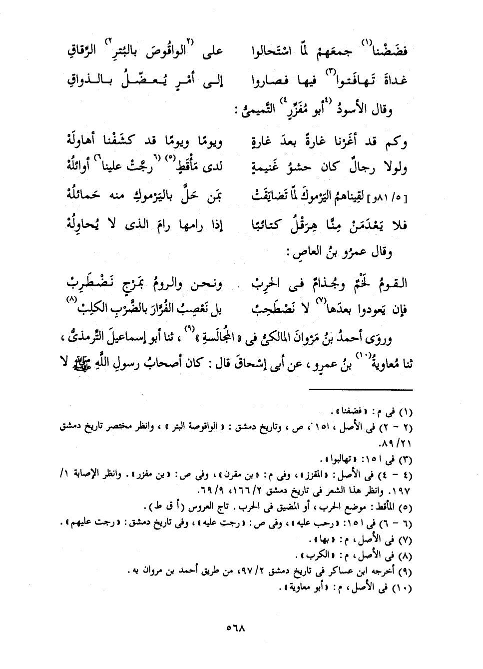 لَقِينَاهُمُ الْيَرْمُوكَ لَمَّا تَضَايَقَتْ ... بِمَنْ حَلَّ بِالْيَرْمُوكِ مِنْهُ حَمَائِلُهْ