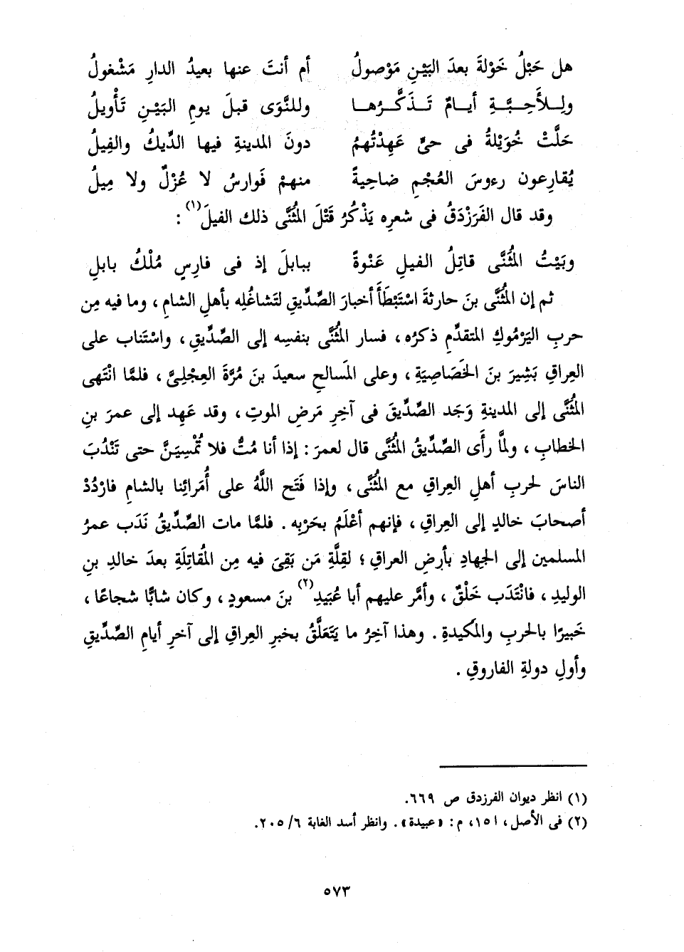 وَقَدْ قَالَ الْفَرَزْدَقُ فِي شِعْرِهِ يَذْكُرُ قَتْلَ الْمُثَنَّى ذَلِكَ الْفِيلَ: