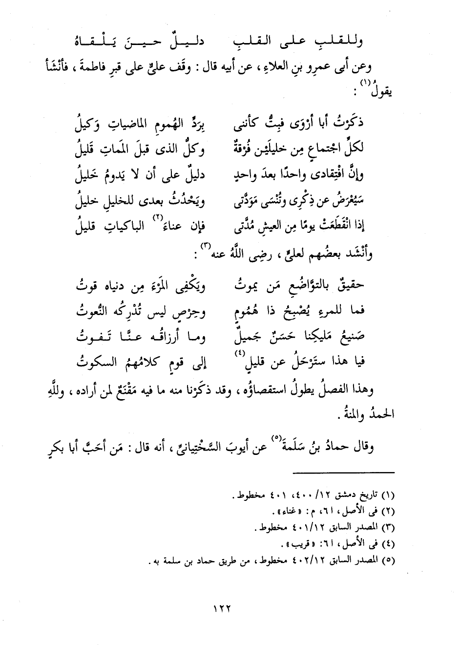 لِكُلِّ اجْتِمَاعٍ مِنْ خَلِيلَيْنِ فُرْقَةٌ ... وَكُلِّ الَّذِي قَبْلَ الْمَمَاتِ قَلِيلُ