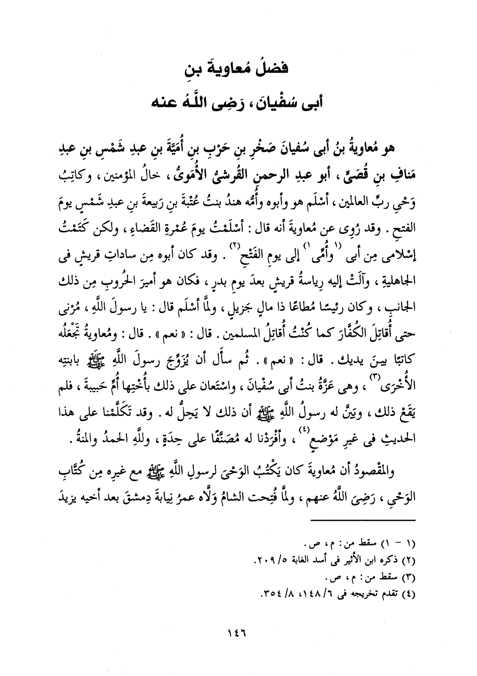 [فَضْلُ مُعَاوِيَةَ بْنِ أَبِي سُفْيَانَ رَضِيَ اللَّهُ عَنْهُ]