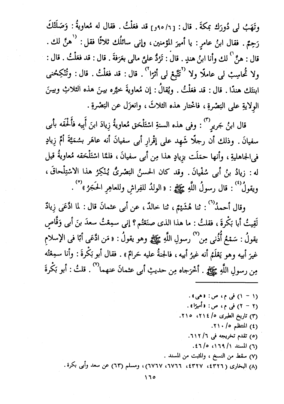 وَقَالَ أَحْمَدُ: ثَنَا هُشَيْمٌ، ثَنَا خَالِدٌ، عَنْ أَبِي عُثْمَانَ قَالَ: لَمَّا ادَّعَى زِيَادٌ لَقِيتُ أَبَا بَكْرَةَ، فَقُلْتُ: مَا هَذَا الَّذِي صَنَعْتُمْ؟ إِنِّي سَمِعْتُ سَعْدَ بْنَ أَبِي وَقَّاصٍ يَقُولُ: سَمْعُ أُذُنِي مِنْ رَسُولِ اللَّهِ صَلَّى اللَّهُ عَلَيْهِ وَسَلَّمَ وَهُوَ يَقُولُ: «مَنِ ادَّعَى أَبًا فِي الْإِسْلَامِ غَيْرَ أَبِيهِ وَهُوَ يَعْلَمُ أَنَّهُ غَيْرُ أَبِيهِ، فَالْجَنَّةُ عَلَيْهِ حَرَامٌ ".» فَقَالَ أَبُو بَكْرَةَ: وَأَنَا سَمِعْتُهُ مِنْ رَسُولِ اللَّهِ صَلَّى اللَّهُ عَلَيْهِ وَسَلَّمَ. أَخْرَجْنَاهُ مِنْ حَدِيثِ أَبِي عُثْمَانَ عَنْهُمَا. قُلْتُ: أَبُو بَكْرَةَ
