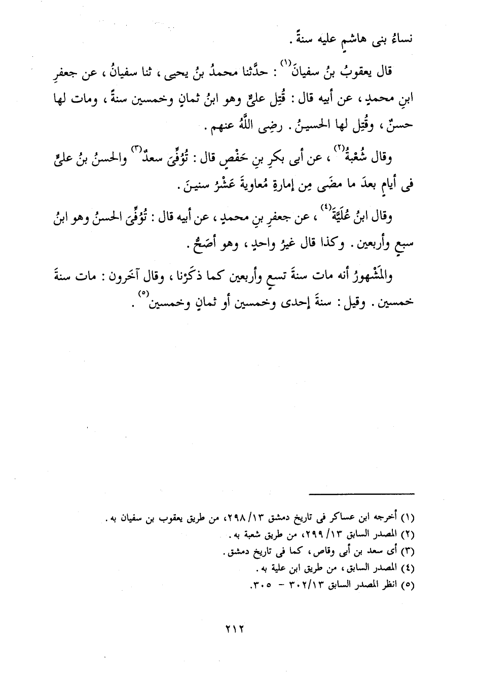 نِسَاءُ بَنِي هَاشِمٍ عَلَيْهِ سَنَةً.