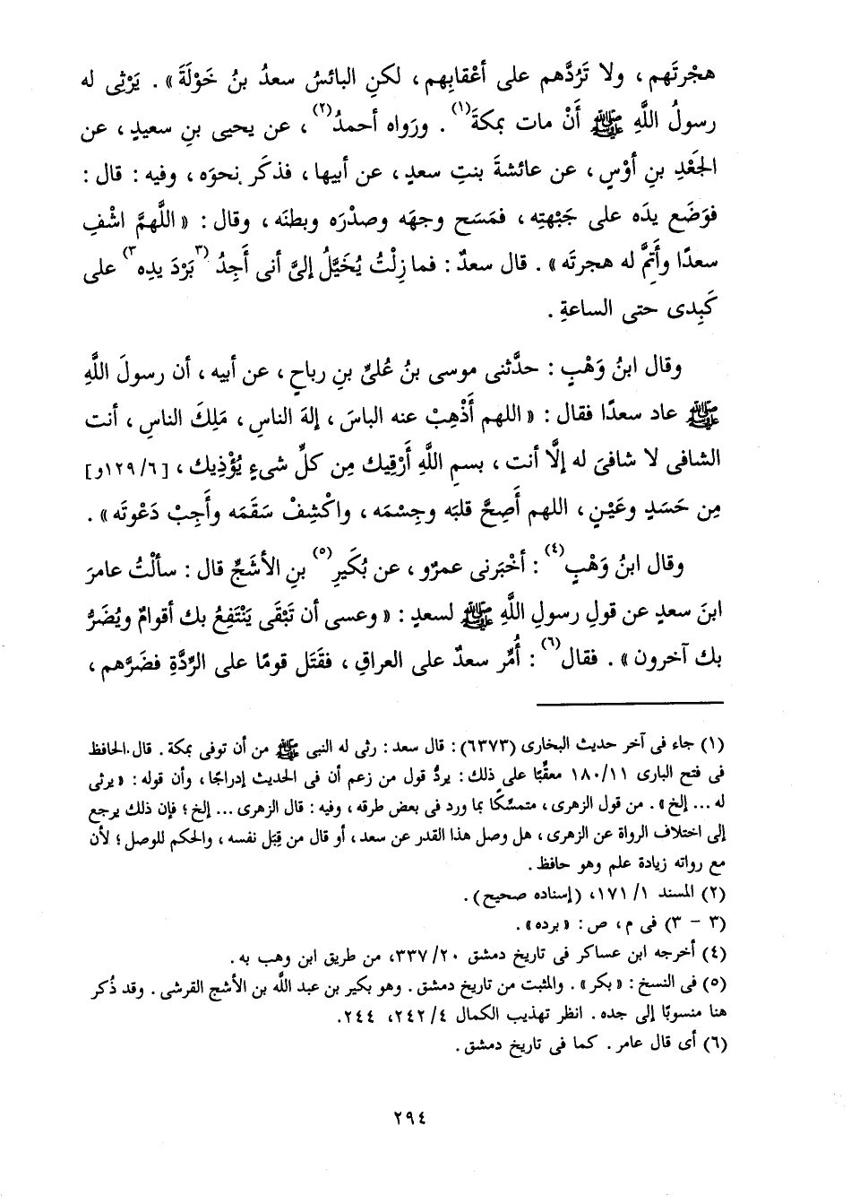 وَقَالَ ابْنُ وَهْبٍ: أَخْبَرَنِي عَمْرٌو، عَنْ بُكَيْرِ بْنِ الْأَشَجِّ قَالَ: سَأَلْتُ عَامِرَ بْنَ سَعْدٍ عَنْ قَوْلِ رَسُولِ اللَّهِ صَلَّى اللَّهُ عَلَيْهِ وَسَلَّمَ لِسَعْدٍ: «وَعَسَى أَنْ تَبْقَى يَنْتَفِعُ بِكَ أَقْوَامٌ وَيَضُرُّ بِكَ آخَرُونَ ".» فَقَالَ: أُمِّرَ سَعْدٌ عَلَى الْعِرَاقِ، فَقَتَلَ قَوْمًا عَلَى الرِّدَّةِ فَضَرَّهُمْ،