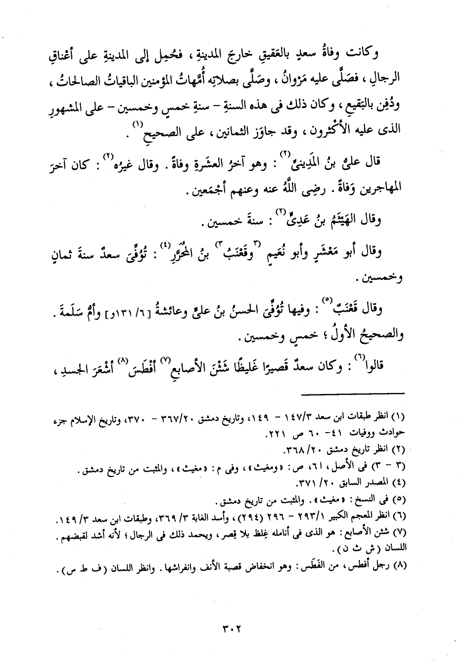 وَقَالَ أَبُو مَعْشَرٍ وَأَبُو نُعَيْمٍ وَقَعْنَبُ بْنُ الْمُحَرِّرِ: تُوُفِّيَ سَعْدٌ سَنَةَ ثَمَانٍ وَخَمْسِينَ.