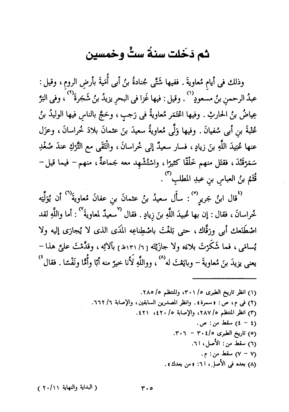 [ثُمَّ دَخَلَتْ سَنَةُ سِتٍّ وَخَمْسِينَ]