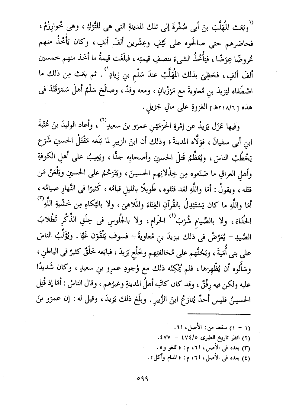 وَفِيهَا عَزَلَ يَزِيدُ عَنْ إِمْرَةِ الْحَرَمَيْنِ عَمْرَو بْنَ سَعِيدٍ، وَأَعَادَ الْوَلِيدَ بْنَ عُتْبَةَ بْنِ أَبِي سُفْيَانَ، فَوَلَّاهُ الْمَدِينَةَ ; وَذَلِكَ أَنَّ ابْنَ الزُّبَيْرِ لَمَّا بَلَغَهُ مَقْتَلُ الْحُسَيْنِ شَرَعَ يَخْطُبُ النَّاسَ، وَيُعَظِّمُ قَتْلَ الْحُسَيْنِ وَأَصْحَابِهِ جِدًّا، وَيَعِيبُ عَلَى أَهْلِ الْكُوفَةِ وَأَهْلِ الْعِرَاقِ مَا صَنَعُوهُ مِنْ خِذْلَانِهِمُ الْحُسَيْنَ، وَيَتَرَحَّمُ عَلَى الْحُسَيْنِ وَيَلْعَنُ مَنْ قَتَلَهُ، وَيَقُولُ: أَمَا وَاللَّهِ لَقَدْ قَتَلُوهُ، طَوِيلًا بِاللَّيْلِ قِيَامُهُ، كَثِيرًا فِي النَّهَارِ صِيَامُهُ، أَمَا وَاللَّهِ مَا كَانَ يَسْتَبْدِلُ بِالْقُرْآنِ الْغِنَاءَ وَالْمَلَاهِيَ، وَلَا بِالْبُكَاءِ مِنْ خَشْيَةِ اللَّهِ الْحُدَاءَ، وَلَا بِالصِّيَامِ شُرْبَ الْحَرَامِ، وَلَا بِالْجُلُوسِ فِي حِلَقِ الذِّكْرِ تَطْلَابَ الصَّيْدِ - يُعَرِّضُ فِي ذَلِكَ بِيَزِيدَ بْنِ مُعَاوِيَةَ - فَسَوْفَ يَلْقَوْنَ غَيًّا. وَيُؤَلِّبُ النَّاسَ عَلَى بَنِي أُمَيَّةَ، وَيَحُثُّهُمْ عَلَى مُخَالَفَتِهِمْ وَخَلْعِ يَزِيدَ، فَبَايَعَهُ خَلْقٌ كَثِيرٌ فِي الْبَاطِنِ، وَسَأَلُوهُ أَنْ يُظْهِرَهَا، فَلَمْ يُمْكِنْهُ ذَلِكَ مَعَ وُجُودِ عَمْرِو بْنِ سَعِيدٍ، وَكَانَ شَدِيدًا عَلَيْهِ وَلَكِنْ فِيهِ رِفْقٌ، وَقَدْ كَانَ كَاتَبَهُ أَهْلُ الْمَدِينَةِ وَغَيْرُهُمْ، وَقَالَ النَّاسُ: أَمَّا إِذْ قُتِلَ الْحُسَيْنُ فَلَيْسَ أَحَدٌ يُنَازِعُ ابْنَ الزُّبَيْرِ. وَبَلَغَ ذَلِكَ يَزِيدَ، وَقِيلَ لَهُ: إِنَّ عَمْرَو بْنَ سَعِيدٍ