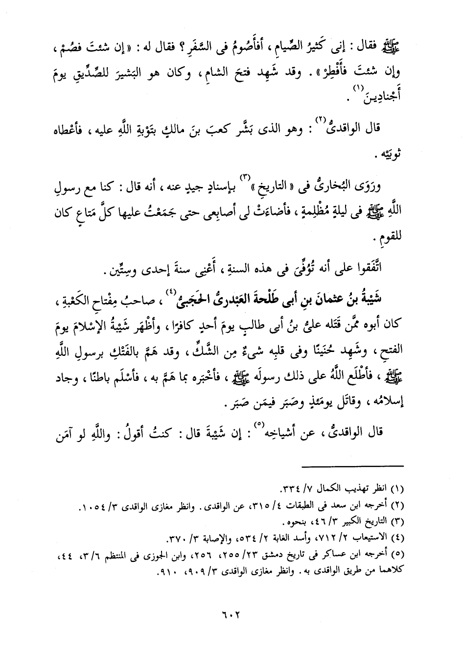 صَاحِبُ مِفْتَاحِ الْكَعْبَةِ، كَانَ أَبُوهُ مِمَّنْ قَتَلَهُ عَلِيُّ بْنُ أَبِي طَالِبٍ يَوْمَ أُحُدٍ كَافِرًا، وَأَظْهَرَ شَيْبَةُ الْإِسْلَامَ يَوْمَ الْفَتْحِ، وَشَهِدَ حُنَيْنًا وَفِي قَلْبِهِ شَيْءٌ مِنَ الشَّكِّ، وَقَدْ هَمَّ بِالْفَتْكِ بِرَسُولِ اللَّهِ صَلَّى اللَّهُ عَلَيْهِ وَسَلَّمَ، فَأَطْلَعَ اللَّهُ عَلَى ذَلِكَ رَسُولَهُ صَلَّى اللَّهُ عَلَيْهِ وَسَلَّمَ، فَأَخْبَرَهُ بِمَا هَمَّ بِهِ، فَأَسْلَمَ بَاطِنًا، وَجَادَ إِسْلَامُهُ، وَقَاتَلَ يَوْمَئِذٍ وَصَبَرَ فِيمَنْ صَبَرَ.