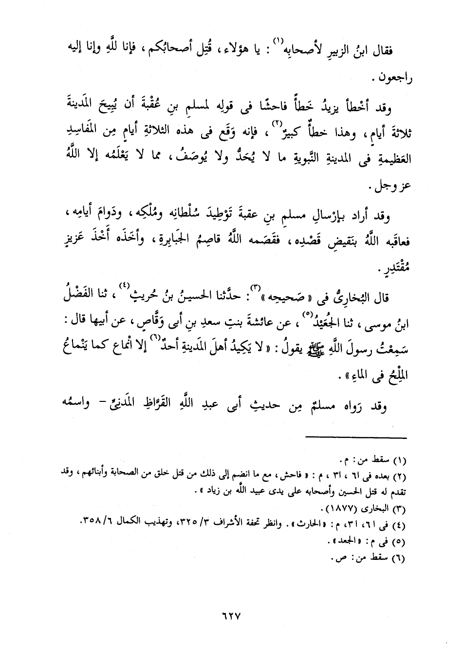 وَقَدْ أَخْطَأَ يَزِيدُ خَطَأً فَاحِشًا فِي قَوْلِهِ لِمُسْلِمِ بْنِ عُقْبَةَ أَنْ يُبِيحَ الْمَدِينَةَ ثَلَاثَةَ أَيَّامٍ، وَهَذَا خَطَأٌ كَبِيرٌ، فَإِنَّهُ وَقَعَ فِي هَذِهِ الثَّلَاثَةِ أَيَّامٍ مِنَ الْمَفَاسِدِ الْعَظِيمَةِ فِي الْمَدِينَةِ النَّبَوِيَّةِ مَا لَا يُحَدُّ وَلَا يُوَصَفُ، مِمَّا لَا يَعْلَمُهُ إِلَّا اللَّهُ عَزَّ وَجَلَّ.