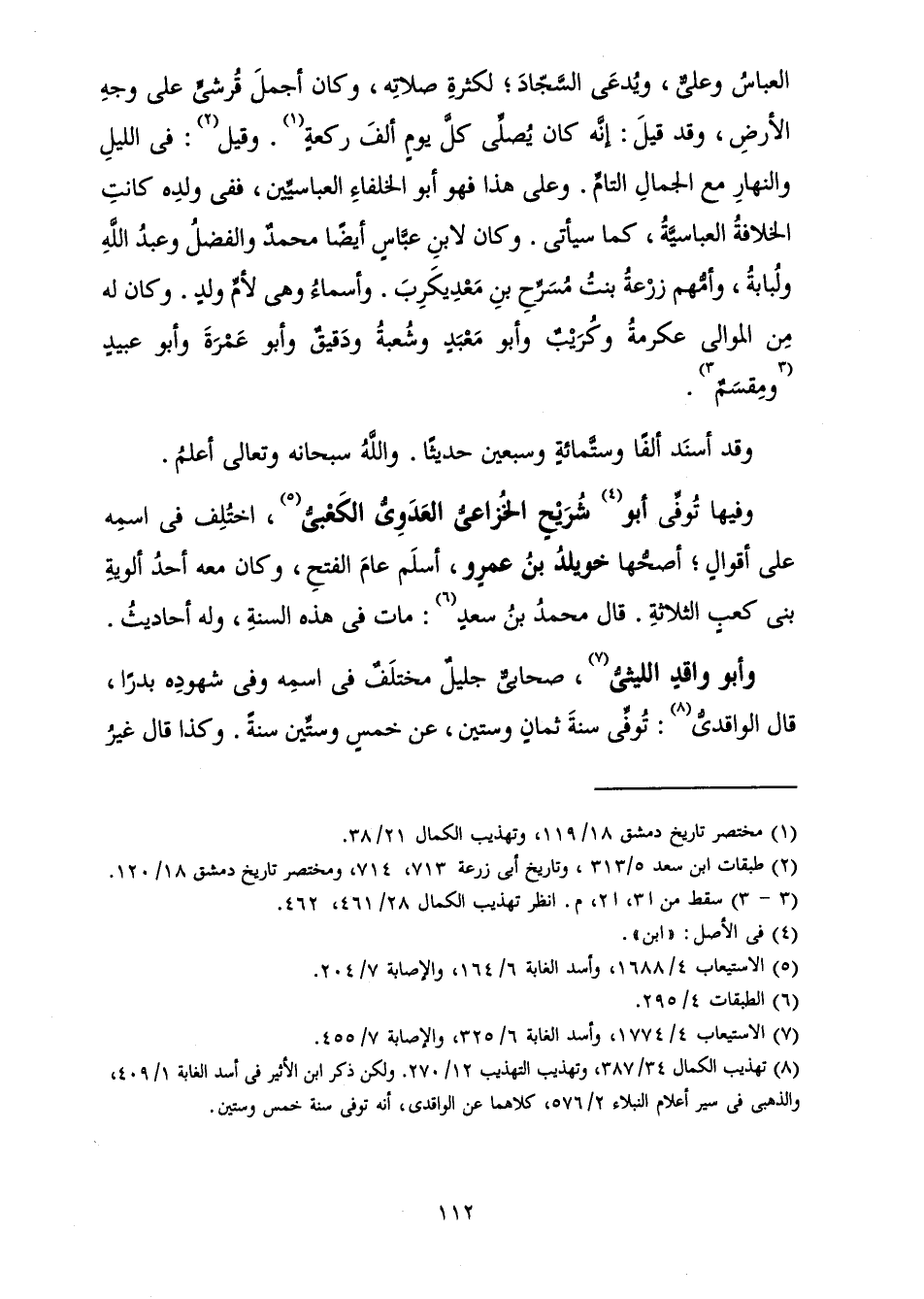الْعَبَّاسُ، وَعَلِيٌّ، وَيُدْعَى السَّجَّادَ ; لِكَثْرَةِ صِلَاتِهِ، وَكَانَ أَجْمَلَ قُرَشِيٍّ عَلَى وَجْهِ الْأَرْضِ، وَقَدْ قِيلَ: إِنَّهُ كَانَ يُصَلِّي كُلَّ يَوْمٍ أَلْفَ رَكْعَةٍ. وَقِيلَ فِي اللَّيْلِ وَالنَّهَارِ مَعَ الْجَمَالِ التَّامِّ. وَعَلَى هَذَا فَهُوَ أَبُو الْخُلَفَاءِ الْعَبَّاسِيِّينَ، فَفِي وَلَدِهِ كَانْتِ الْخِلَافَةُ الْعَبَّاسِيَّةُ، كَمَا سَيَأْتِي، وَكَانَ لِابْنِ عَبَّاسٍ أَيْضًا مُحَمَّدٌ، وَالْفَضْلُ، وَعَبْدُ اللَّهِ، وَلُبَابَةُ، وَأُمُّهُمْ زُرْعَةُ بَنَتُ مُسَرَّحِ بْنِ مَعْدِيَكَرِبَ. وَأَسْمَاءُ وَهِيَ لِأُمِّ وَلَدٍ. وَكَانَ لَهُ مِنَ الْمَوَالِي عِكْرِمَةُ، وَكُرَيْبٌ، وَأَبُو مَعْبَدٍ، وَشُعْبَةُ، وَدَقِيقٌ، وَأَبُو عَمْرَةَ، وَأَبُو عُبَيْدٍ، وَمِقْسَمٌ.