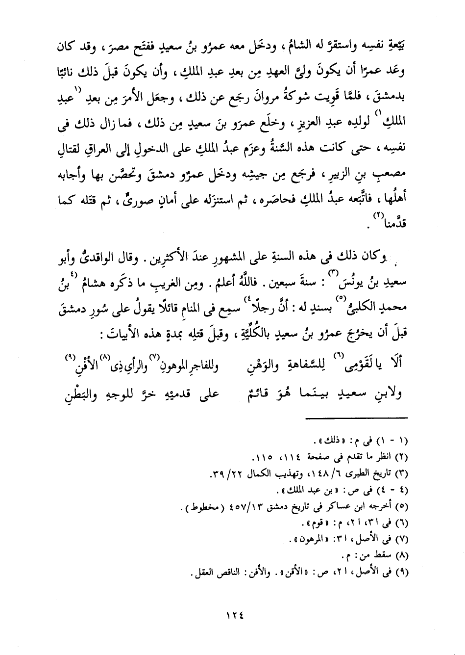 قَالَ: فَأَتَى الرَّجُلُ عَبْدَ الْمَلِكِ فَأَخْبَرَهُ، فَقَالَ: وَيَحَكَ، سَمِعَهَا مِنْكَ أَحَدٌ؟ قَالَ: لَا. قَالَ: ضَعْهَا تَحْتَ قَدَمَيْكَ. ثُمَّ بَعْدَ ذَلِكَ خَلَعَ عَمْرٌو الطَّاعَةَ، وَقَتَلَهُ عَبْدُ الْمَلِكِ بْنُ مَرْوَانَ