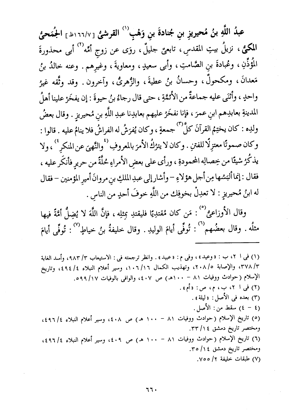 وَقَالَ الْأَوْزَاعِيُّ: مَنْ كَانَ مُقْتَدِيًا فَلْيَقْتَدِ بِمِثْلِهِ، فَإِنَّ اللَّهَ لَا يُضِلُّ أُمَّةً فِيهَا مِثْلُهُ. وَقَالَ بَعْضُهُمْ: تُوُفِّيَ أَيَّامَ الْوَلِيدِ. وَقَالَ خَلِيفَةُ بْنُ خَيَّاطٍ: تُوُفِّيَ أَيَّامَ
