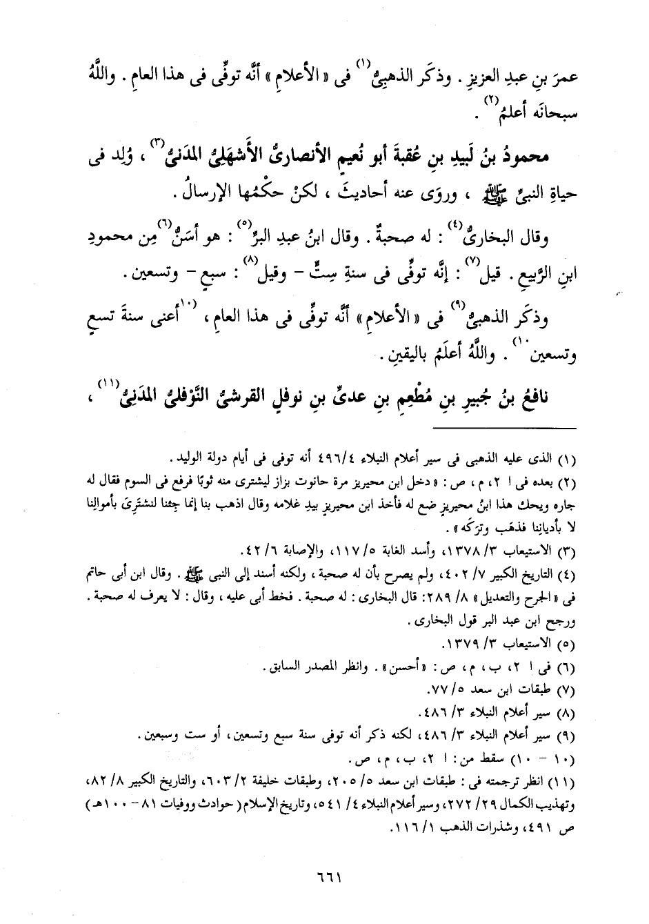 عُمَرَ بْنِ عَبْدِ الْعَزِيزِ وَذَكَرَ الذَّهَبِيُّ فِي " الْأَعْلَامِ " أَنَّهُ تُوُفِّيَ فِي هَذَا الْعَامِ. وَاللَّهُ سُبْحَانَهُ أَعْلَمُ.