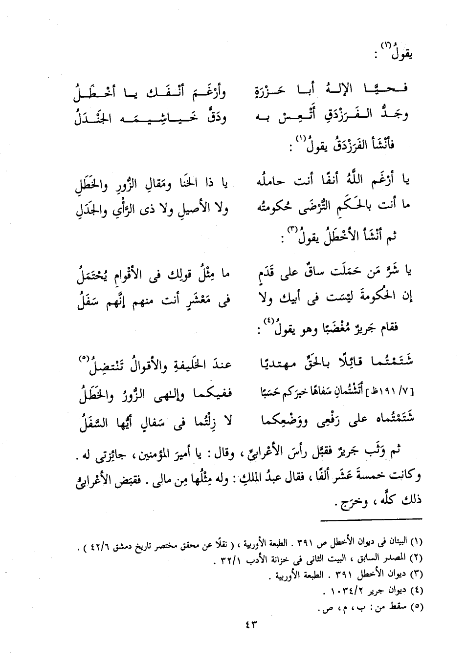 ثُمَّ أَنْشَأَ الْأَخْطَلُ يَقُولُ: