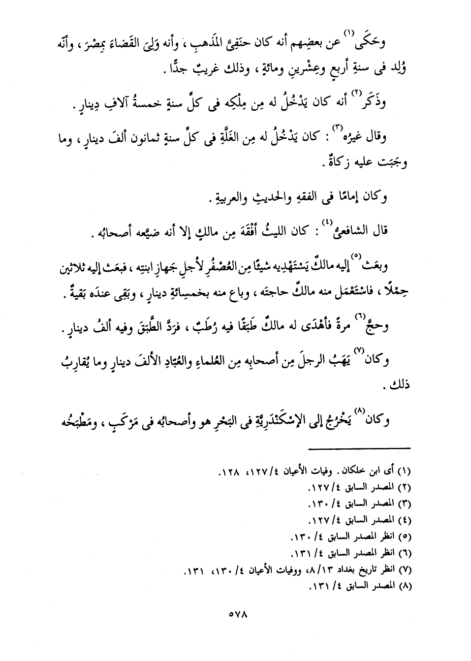 وَقَالَ غَيْرُهُ: كَانَ يَدْخُلُ لَهُ مِنَ الْغَلَّةِ فِي كُلِّ سَنَةٍ ثَمَانُونَ أَلْفَ دِينَارٍ، وَمَا وَجَبَتْ عَلَيْهِ زَكَاةٌ.
