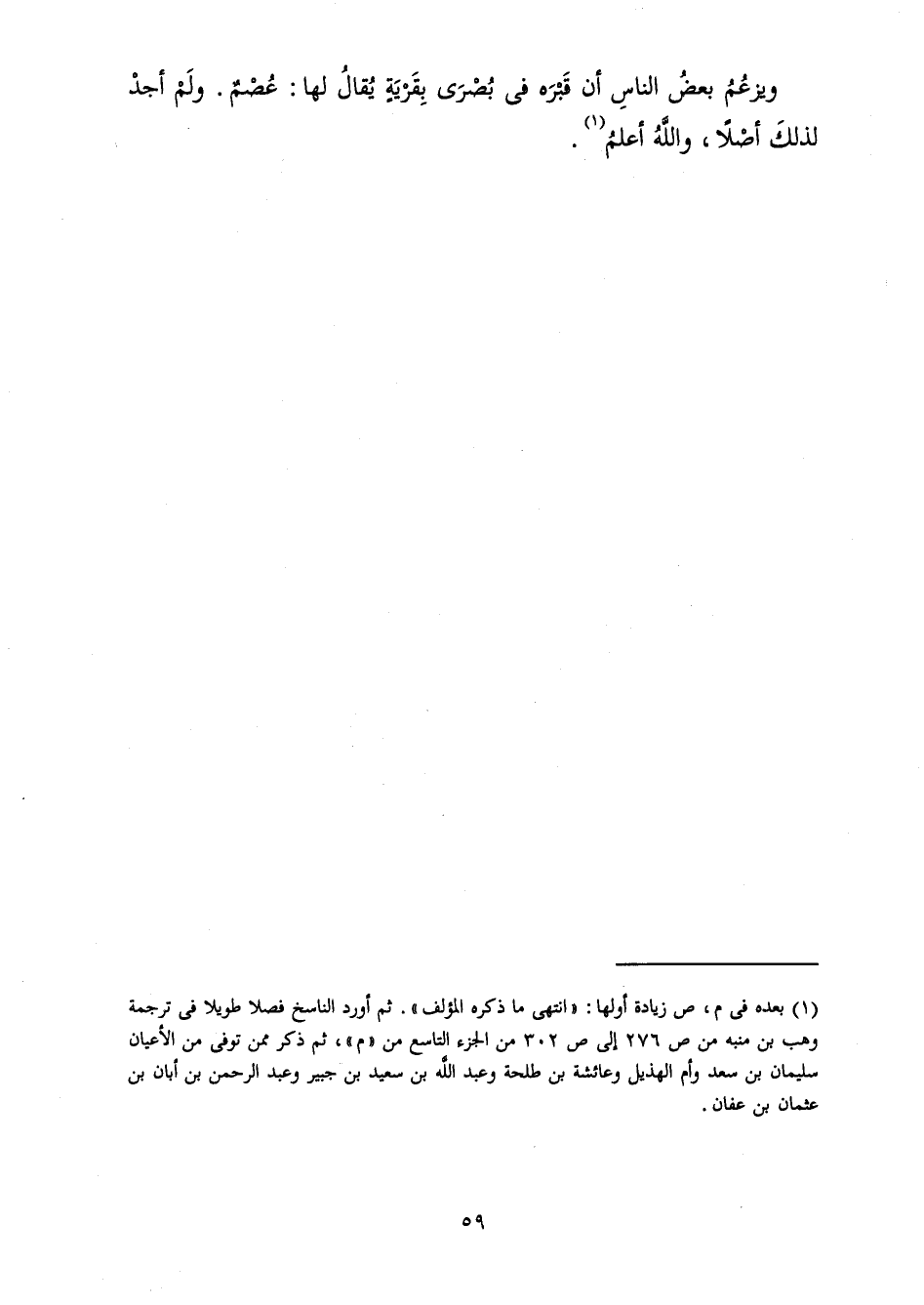 وَيَزْعُمُ بَعْضُ النَّاسِ أَنَّ قَبْرَهُ فِي بُصْرَى بِقَرْيَةٍ يُقَالُ لَهَا: عُصْمٌ. وَلَمْ أَجِدْ لِذَلِكَ أَصْلًا، وَاللَّهُ أَعْلَمُ.