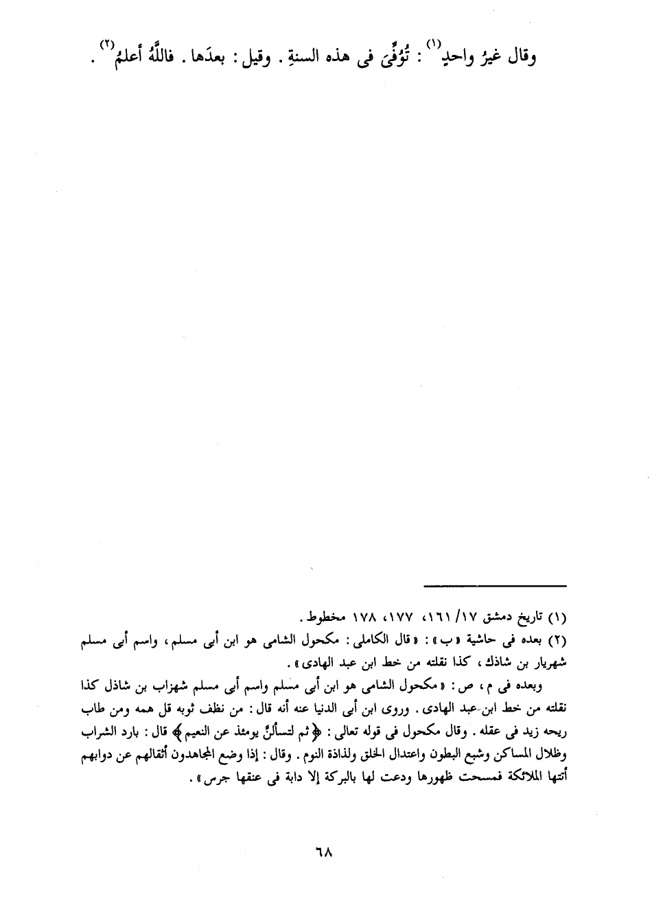 وَقَالَ غَيْرُ وَاحِدٍ: تُوُفِّيَ فِي هَذِهِ السَّنَةِ. وَقِيلَ: بَعْدَهَا. فَاللَّهُ أَعْلَمُ.