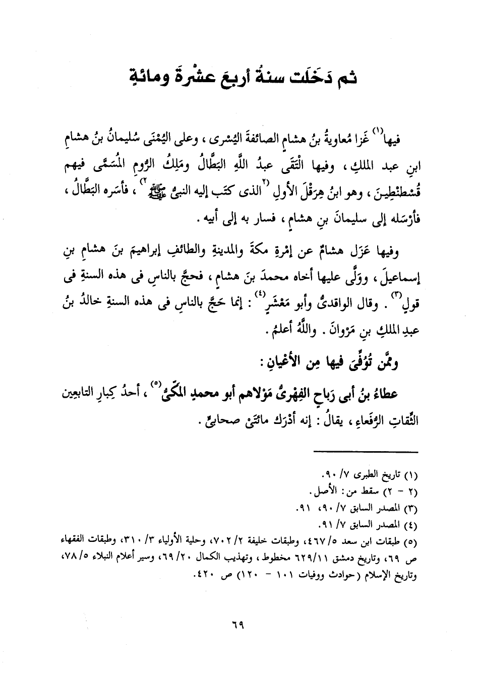 ثُمَّ دَخَلَتْ سَنَةُ أَرْبَعِ عَشْرَةَ وَمِائَةٍ