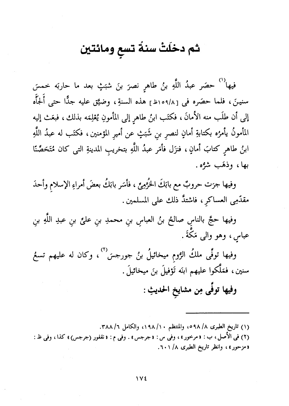 ثُمَّ دَخَلَتْ سَنَةُ تِسْعٍ وَمِائَتَيْنِ