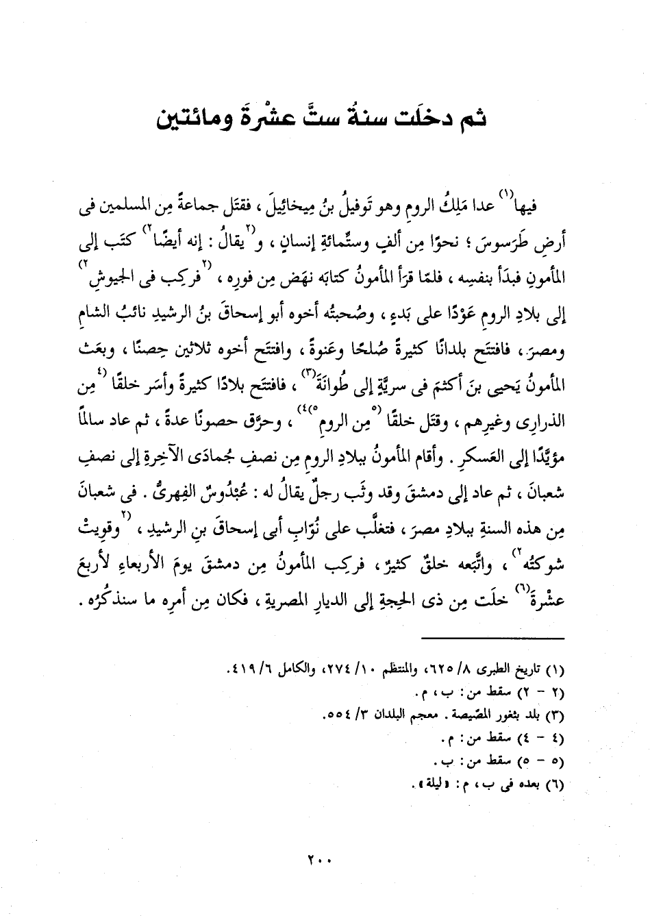 ثُمَّ دَخَلَتْ سَنَةُ سِتَّ عَشْرَةَ وَمِائَتَيْنِ