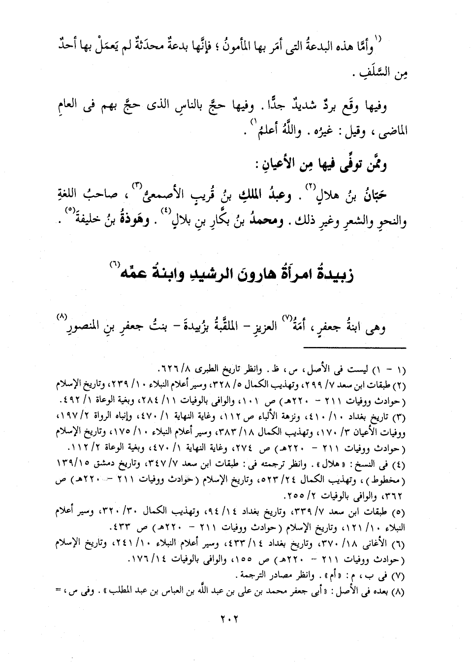 وَهِيَ ابْنَةُ جَعْفَرٍ، أَمَةُ الْعَزِيزِ الْمُلَقَّبَةُ بِزُبَيْدَةَ بِنْتُ جَعْفَرِ بْنِ الْمَنْصُورِ