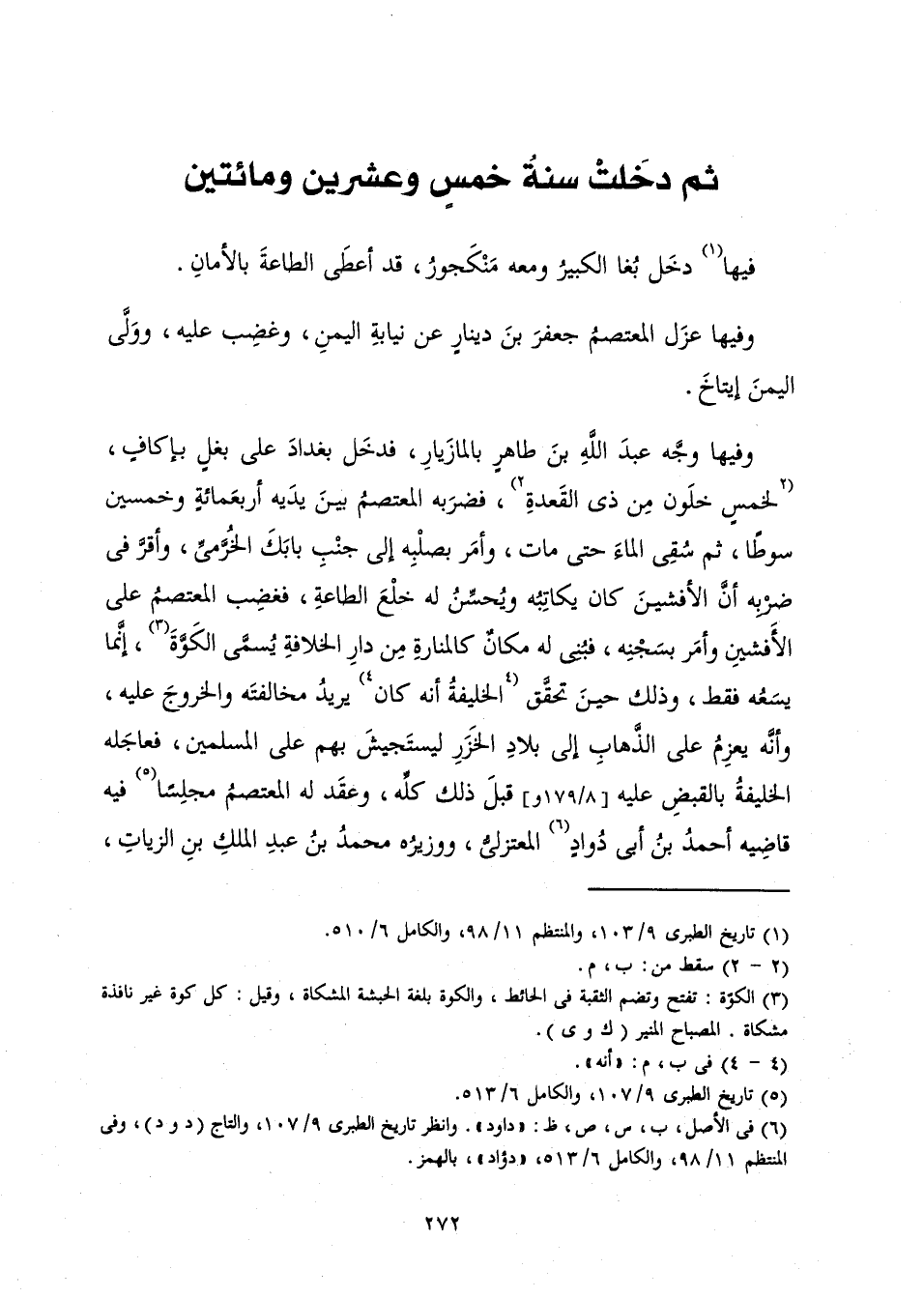 ثُمَّ دَخَلَتْ سَنَةُ خَمْسٍ وَعِشْرِينَ وَمِائَتَيْنِ