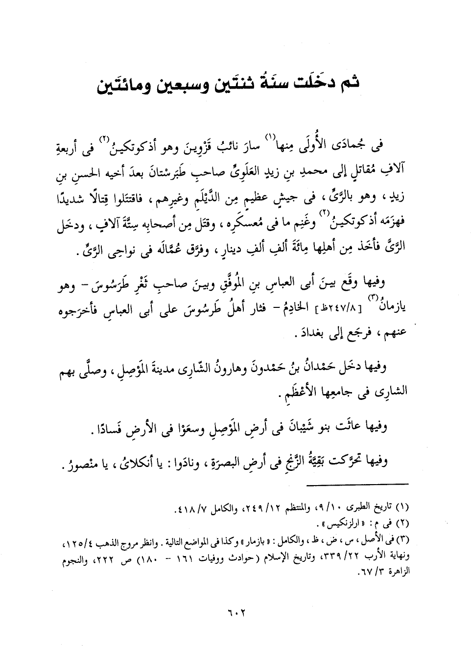 ثُمَّ دَخَلَتْ سَنَةُ ثِنْتَيْنِ وَسَبْعِينَ وَمِائَتَيْنِ