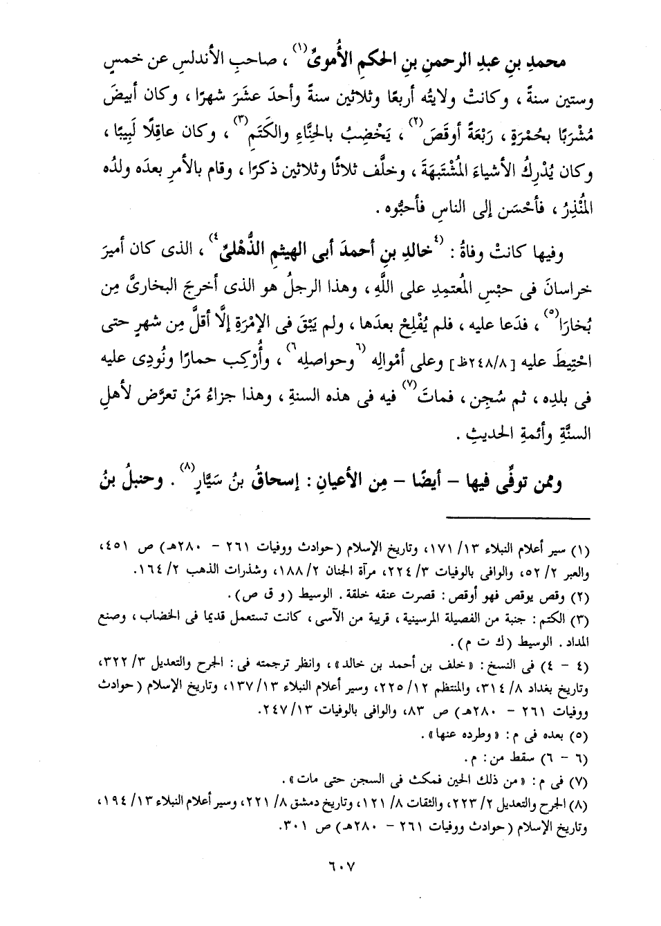 الَّذِي كَانَ أَمِيرَ خُرَاسَانَ فِي حَبْسِ الْمُعْتَمِدِ عَلَى اللَّهِ وَهَذَا الرَّجُلُ هُوَ الَّذِي أَخْرَجَ الْبُخَارِيَّ مِنْ بُخَارَى، فَدَعَا عَلَيْهِ، فَلَمْ يُفْلِحْ بَعْدَهَا، وَلَمْ يَبْقَ فِي الْإِمْرَةِ إِلَّا أَقَلَّ مِنْ شَهْرٍ حَتَّى احْتِيطَ عَلَيْهِ وَعَلَى أَمْوَالِهِ وَحَوَاصِلِهِ، وَأُرْكِبَ حِمَارًا وَنُودِيَ عَلَيْهِ فِي بَلَدِهِ، ثُمَّ سُجِنَ، فَمَاتَ فِيهِ فِي هَذِهِ السَّنَةِ، وَهَذَا جَزَاءُ مَنْ تَعَرَّضَ لِأَهْلِ السُّنَّةِ وَأَئِمَّةِ الْحَدِيثِ.
