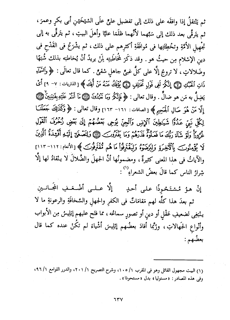 [الْأَنْعَامِ: 112 - 113] وَالْآيَاتُ فِي هَذَا الْمَعْنَى كَثِيرَةٌ، وَمَضْمُونُهَا أَنَّ الْجَهْلَ وَالضَّلَالَ لَا يَنْقَادُ لَهَا إِلَّا شِرَارُ النَّاسِ كَمَا قَالَ بَعْضُ الشُّعَرَاءِ: