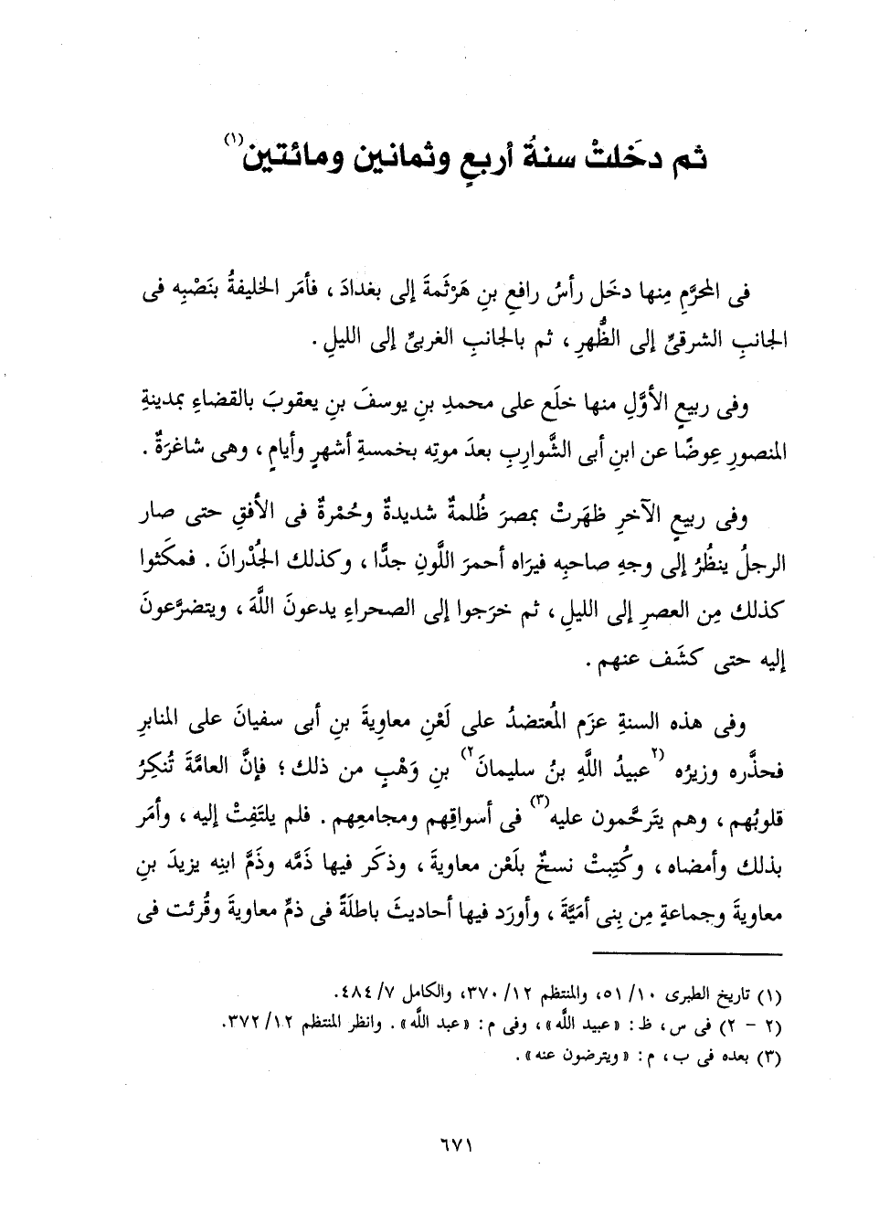 ثُمَّ دَخَلَتْ سَنَةُ أَرْبَعٍ وَثَمَانِينَ وَمِائَتَيْنِ