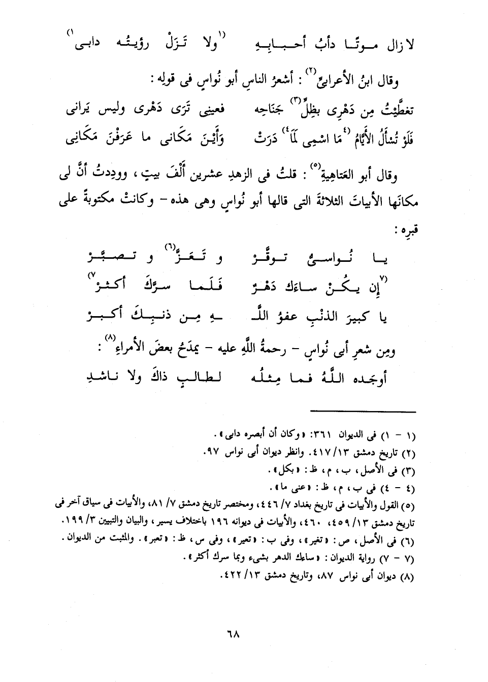وَمِنْ شَعْرِ أَبِي نُوَاسٍ رَحْمَةُ اللَّهِ عَلَيْهِ يَمْدَحُ بَعْضَ الْأُمَرَاءِ: