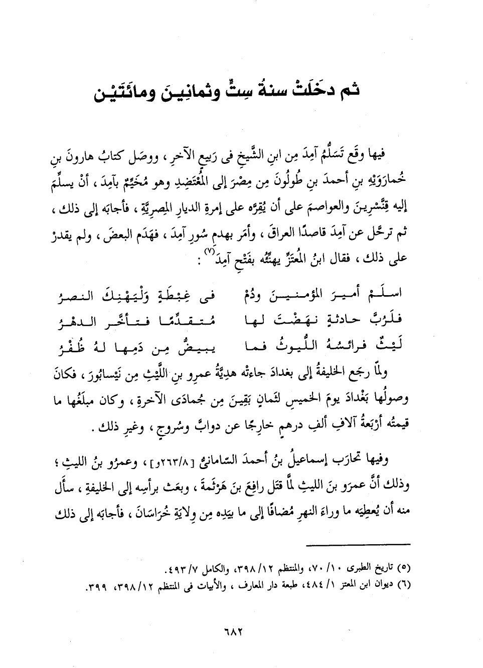 ثُمَّ دَخَلَتْ سَنَةُ سِتٍّ وَثَمَانِينَ وَمِائَتَيْنِ