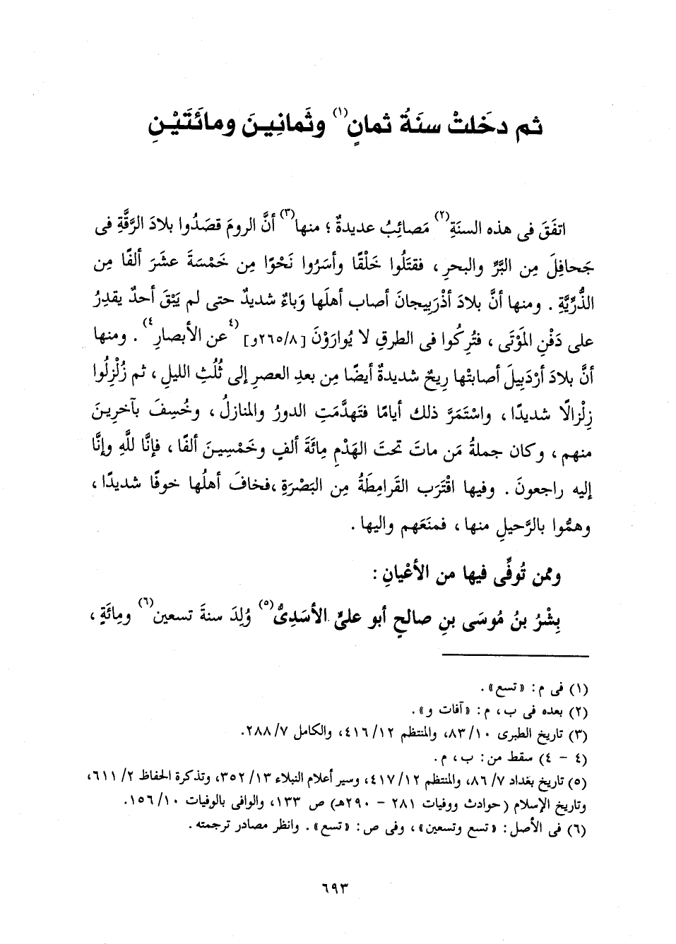 ثُمَّ دَخَلَتْ سَنَةُ ثَمَانٍ وَثَمَانِينَ وَمِائَتَيْنِ