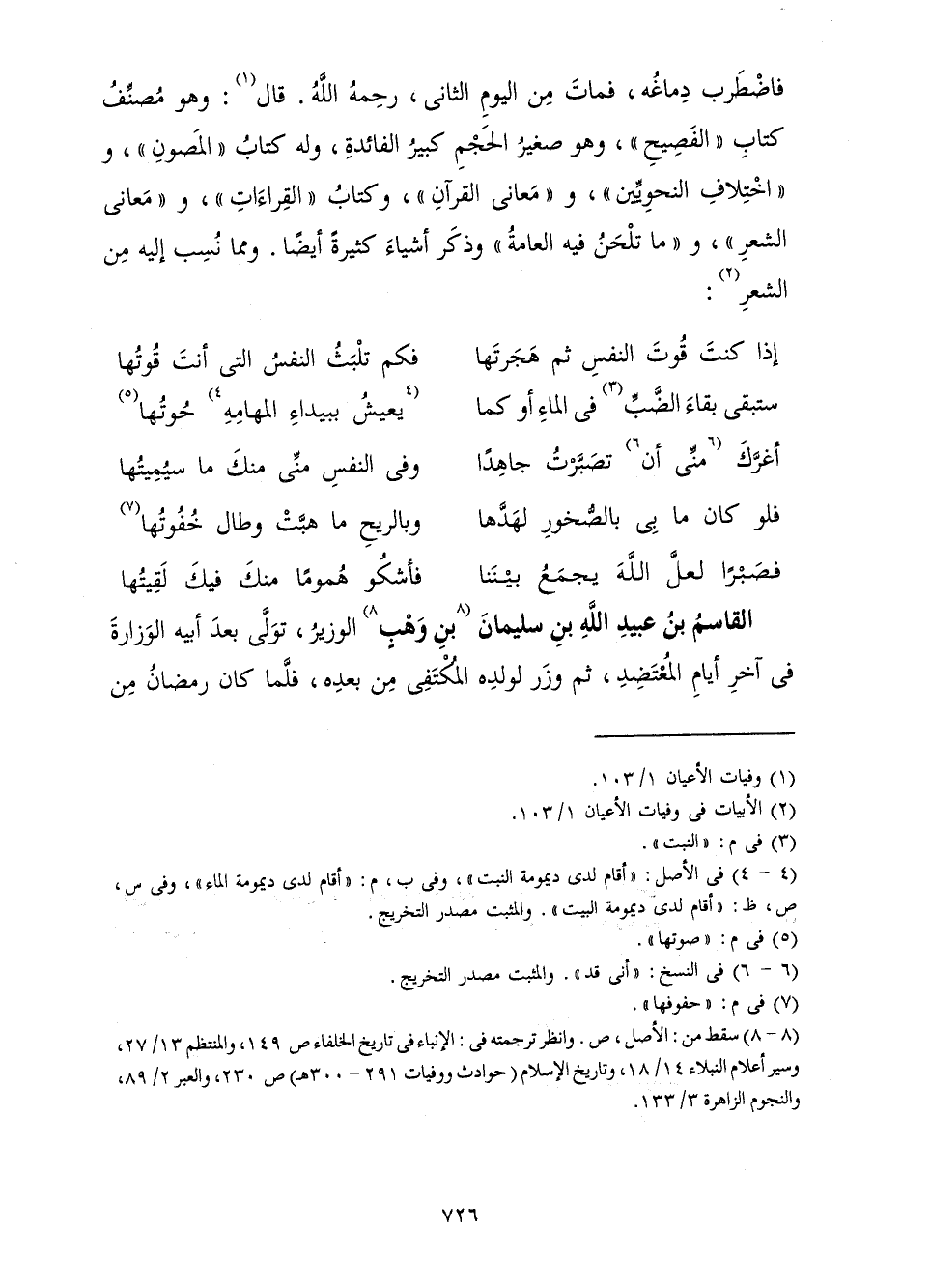 إِذَا كُنْتَ قُوتَ النَّفْسِ ثُمَّ هَجَرْتَهَا ... فَكَمْ تَلْبَثُ النَّفْسُ الَّتِي أَنْتَ قُوتُهَا