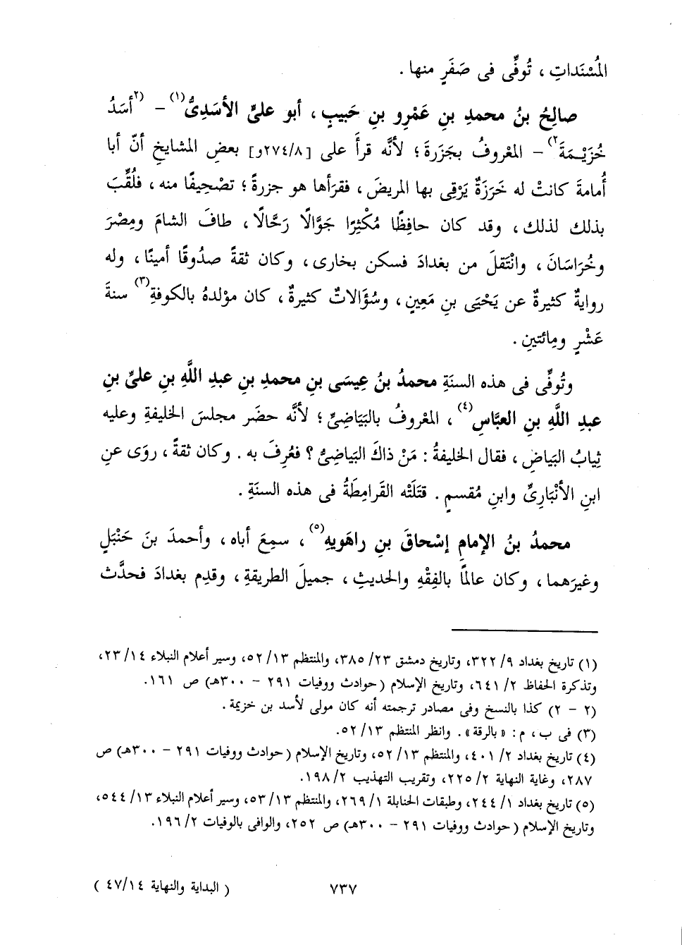 الْمُسْنَدَاتِ تُوُفِّيَ فِي صِفْرٍ مِنْهَا.