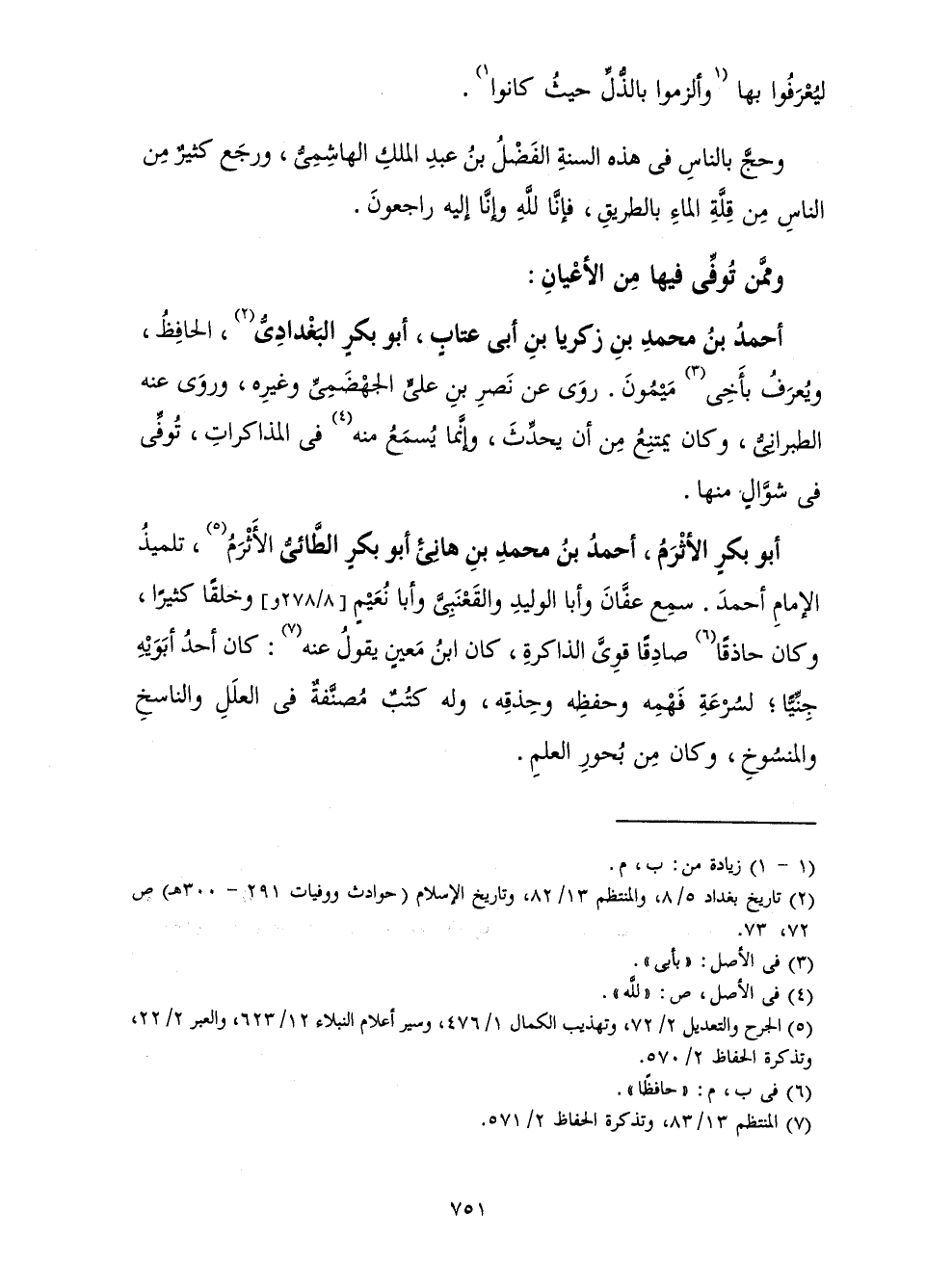 وَحَجَّ بِالنَّاسِ فِي هَذِهِ السَّنَةِ الْفَضْلُ بْنُ عَبْدِ الْمَلِكِ الْهَاشِمِيُّ وَرَجَعَ كَثِيرٌ مِنَ النَّاسِ مِنْ قِلَّةِ الْمَاءِ بِالطَّرِيقِ، فَإِنَّا لِلَّهِ وَإِنَّا إِلَيْهِ رَاجِعُونَ.