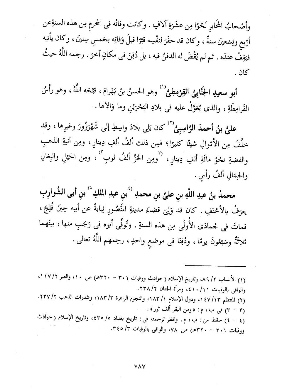 وَهُوَ الْحَسَنُ بْنُ بَهْرَامَ - قَبَّحَهُ اللَّهُ - وَهُوَ رَأْسُ الْقَرَامِطَةِ وَالَّذِي يُعَوَّلُ عَلَيْهِ فِي بِلَادِ الْبَحْرَيْنِ وَمَا وَالَاهَا.