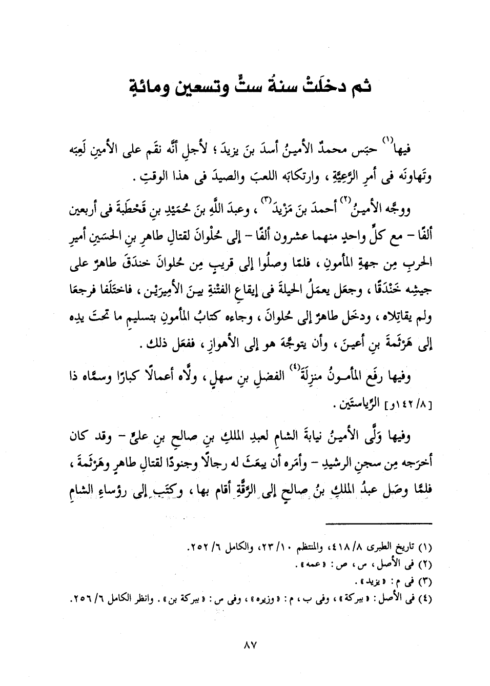 فِيهَا حَبَسَ مُحَمَّدٌ الْأَمِينُ أَسَدَ بْنَ يَزِيدَ؛ لِأَجْلِ أَنَّهُ نَقَمَ عَلَى الْأَمِينِ لَعِبَهُ وَتَهَاوُنَهُ فِي أَمْرِ الرَّعِيَّةِ، وَارْتِكَابَهُ اللَّعِبَ وَالصَّيْدَ فِي هَذَا الْوَقْتِ.