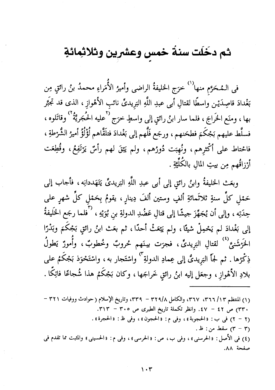 [ثُمَّ دَخَلَتْ سَنَةُ خَمْسٍ وَعِشْرِينَ وَثَلَاثِمِائَةٍ]