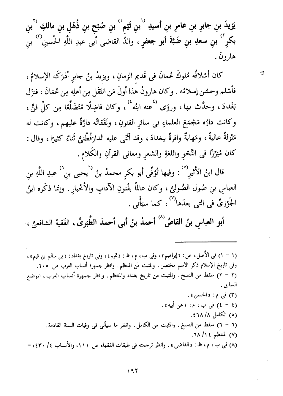 يَزِيدَ بْنِ جَابِرِ بْنِ عَامِرِ بْنِ أُسَيْدِ بْنِ تَيْمِ بْنِ صُبْحِ بْنِ ذُهْلِ بْنِ مَالِكِ بْنِ بَكْرِ بْنِ سَعْدِ بْنِ ضَبَّةَ أَبُو جَعْفَرٍ، وَالِدُ الْقَاضِي أَبِي عَبْدِ اللَّهِ الْحُسَيْنِ بْنِ هَارُونَ.