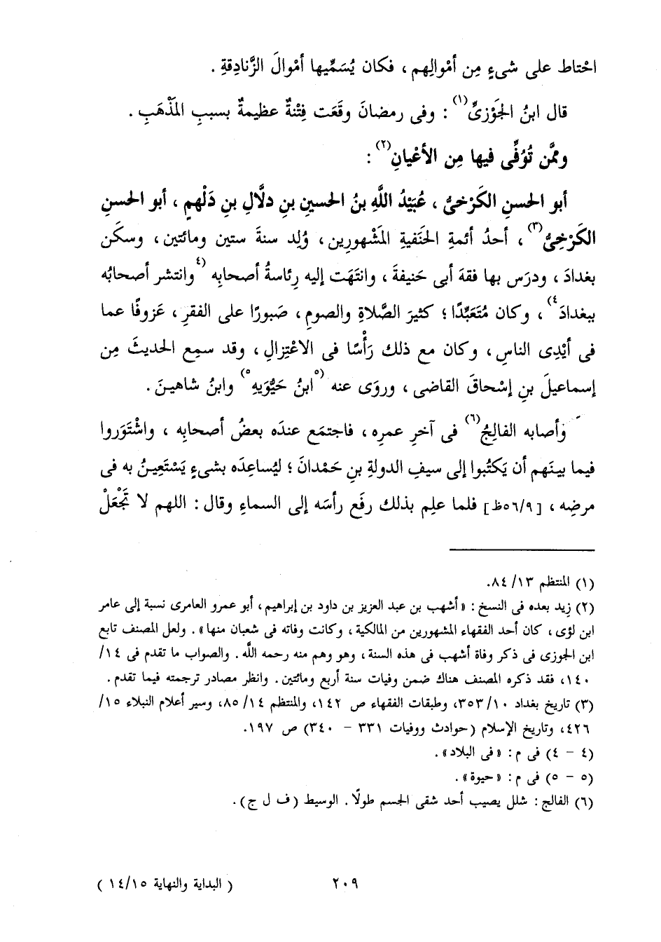 قَالَ ابْنُ الْجَوْزِيِّ: وَفِي رَمَضَانَ وَقَعَتْ فِتْنَةٌ عَظِيمَةٌ بِسَبَبِ الْمَذْهَبِ.