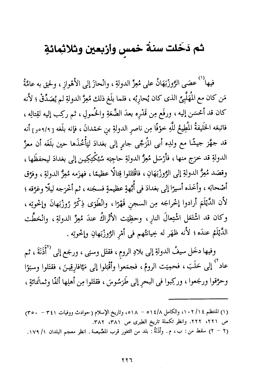 [ثُمَّ دَخَلَتْ سَنَةُ خَمْسٍ وَأَرْبَعِينَ وَثَلَاثِمِائَةٍ]
